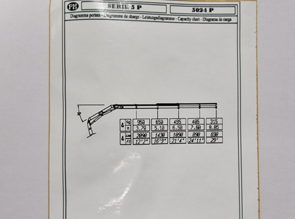 GRU PM 5024 P NUOVA CE - GRU BASE CON QUATTRO SFILI - DISTRIBUTORE PROPORZIONALE + RADIOCOMANDO SCANRECO - ALTEZZA MAX IN VERTICALE 12,50 m - 4 STABILIZZTORI - SCAMBIATORE DI CALORE + ACCESSORI DI SERIE .